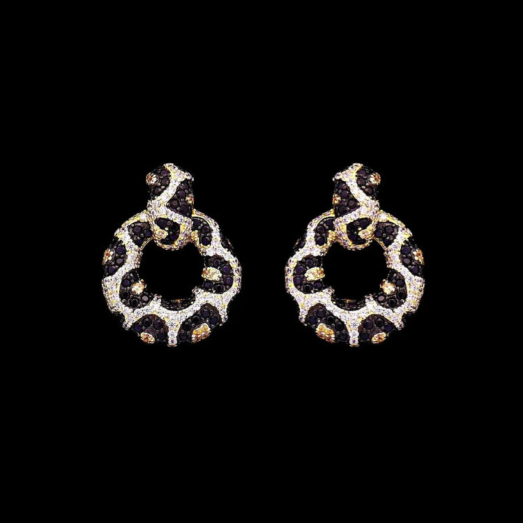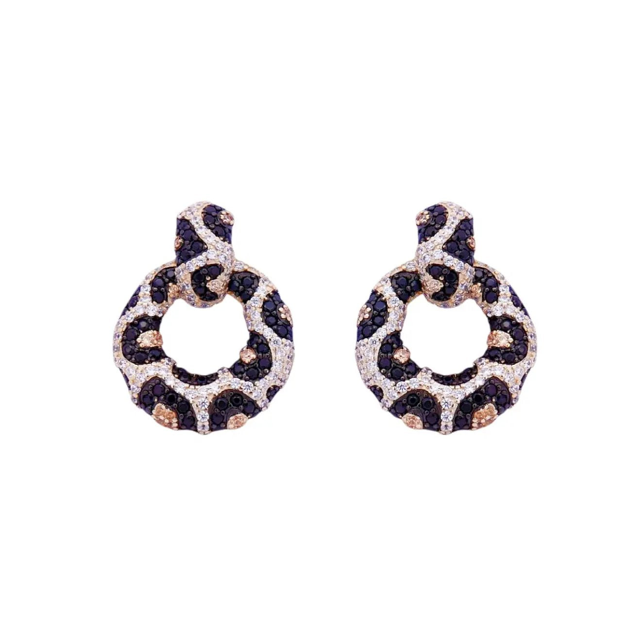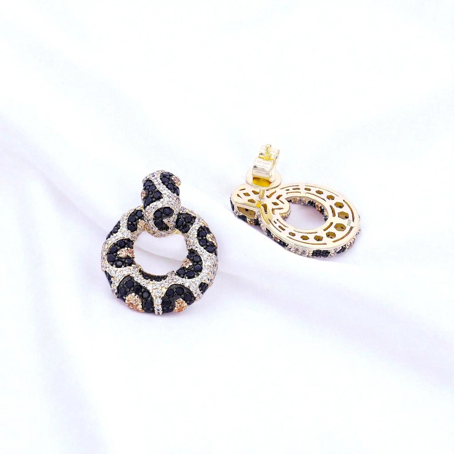 Verguld zilver cat oorbellen met zwarte zirkonia stenen