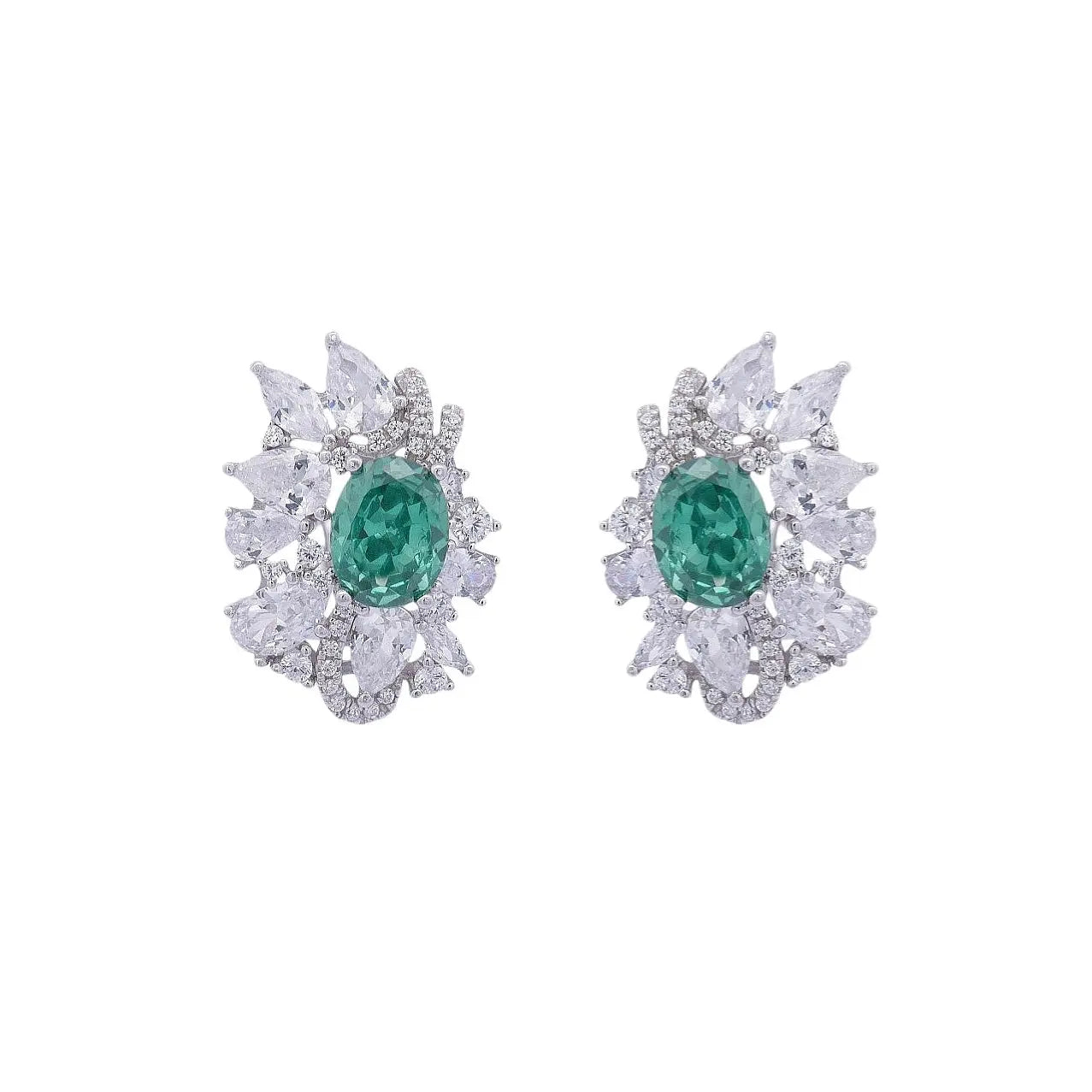 Zilveren cluster oorbellen met groene zirkonia stenen