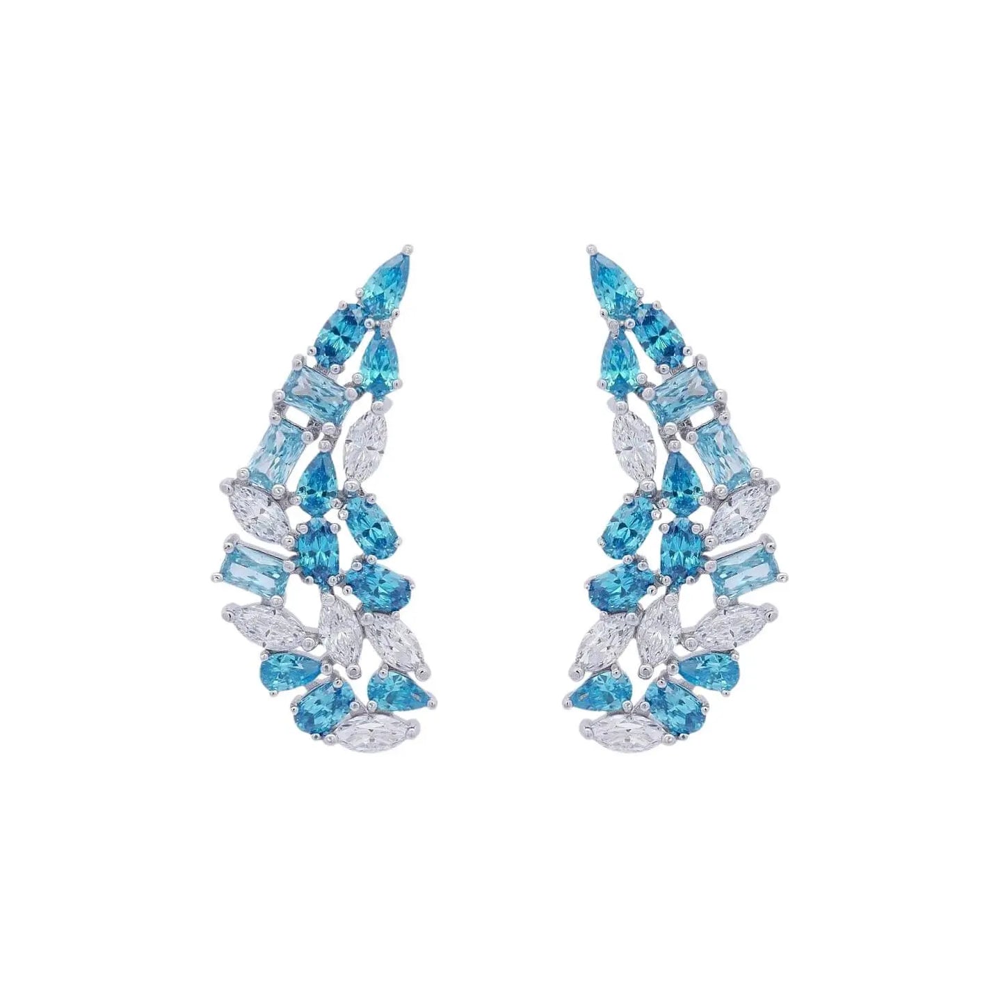 Zilveren luxe oorbellen met blauwe zirkonia stenen