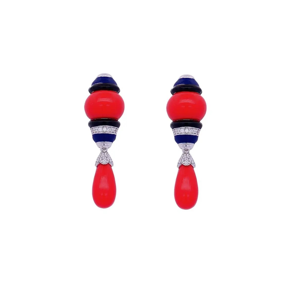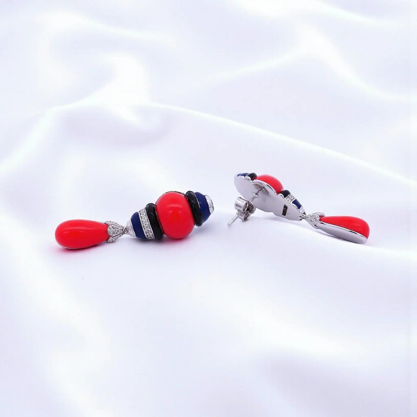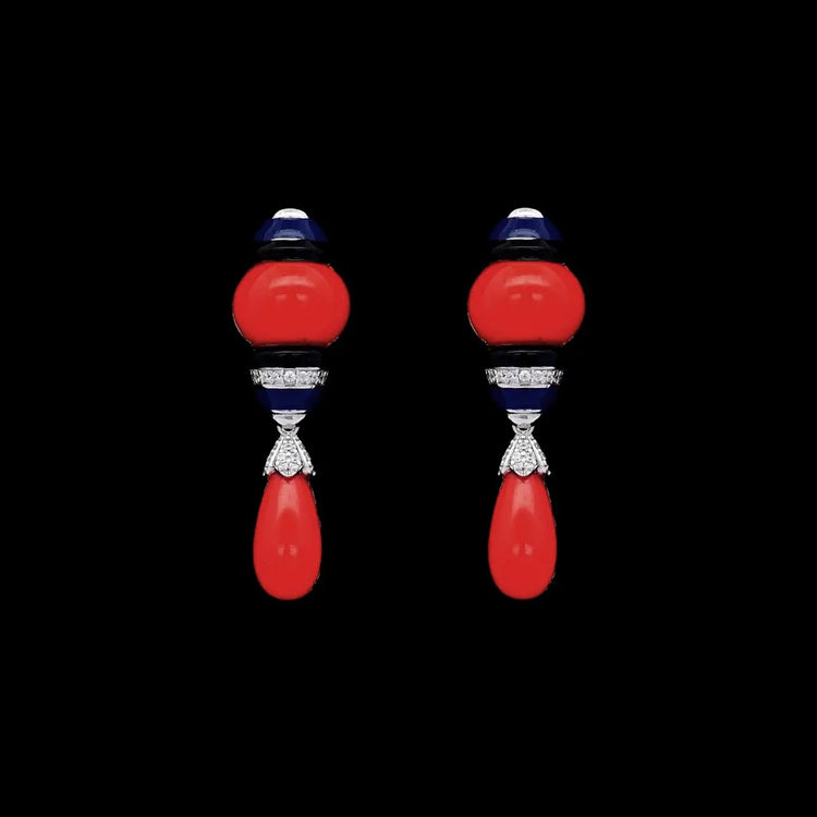 Zilveren oorbellen Art Deco stijl met bloedkoraal en zirkonia stenen