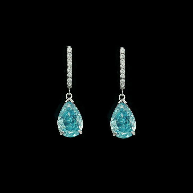 Zilveren oorbellen met peervormige lichtblauwe zirkonia stenen