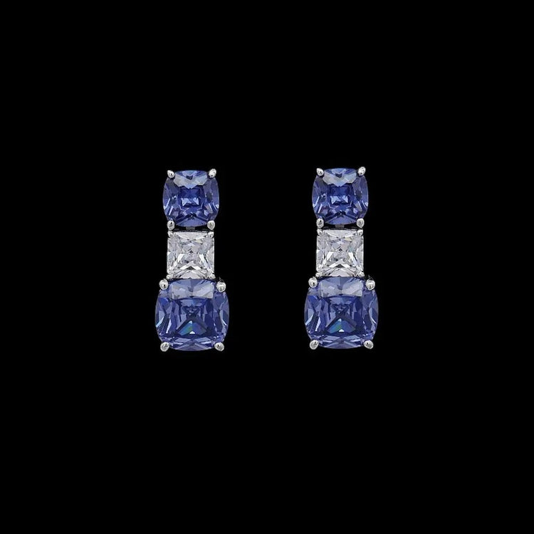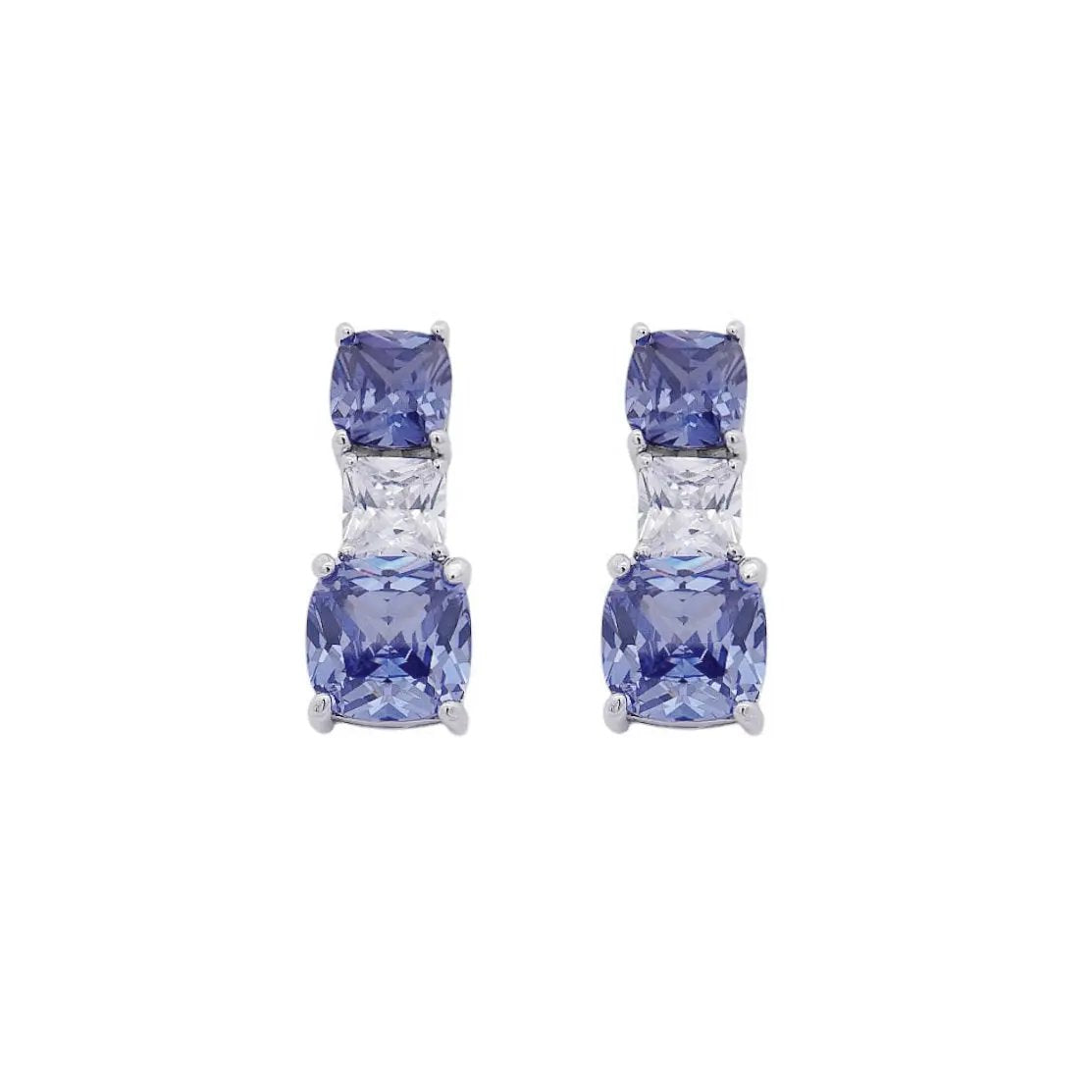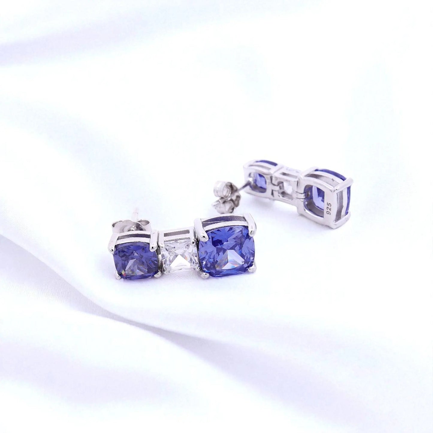 Zilveren oorbellen met tanzanietkleurige cushion zirkonia stenen