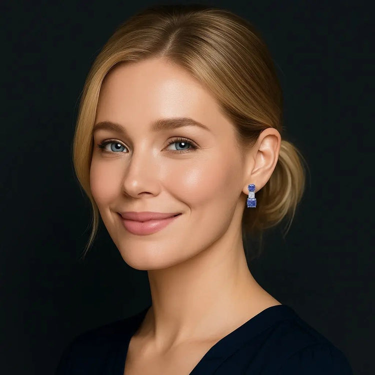 Zilveren oorbellen met tanzanietkleurige cushion zirkonia stenen