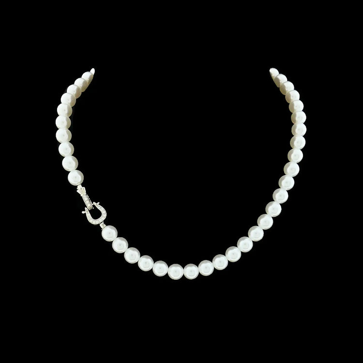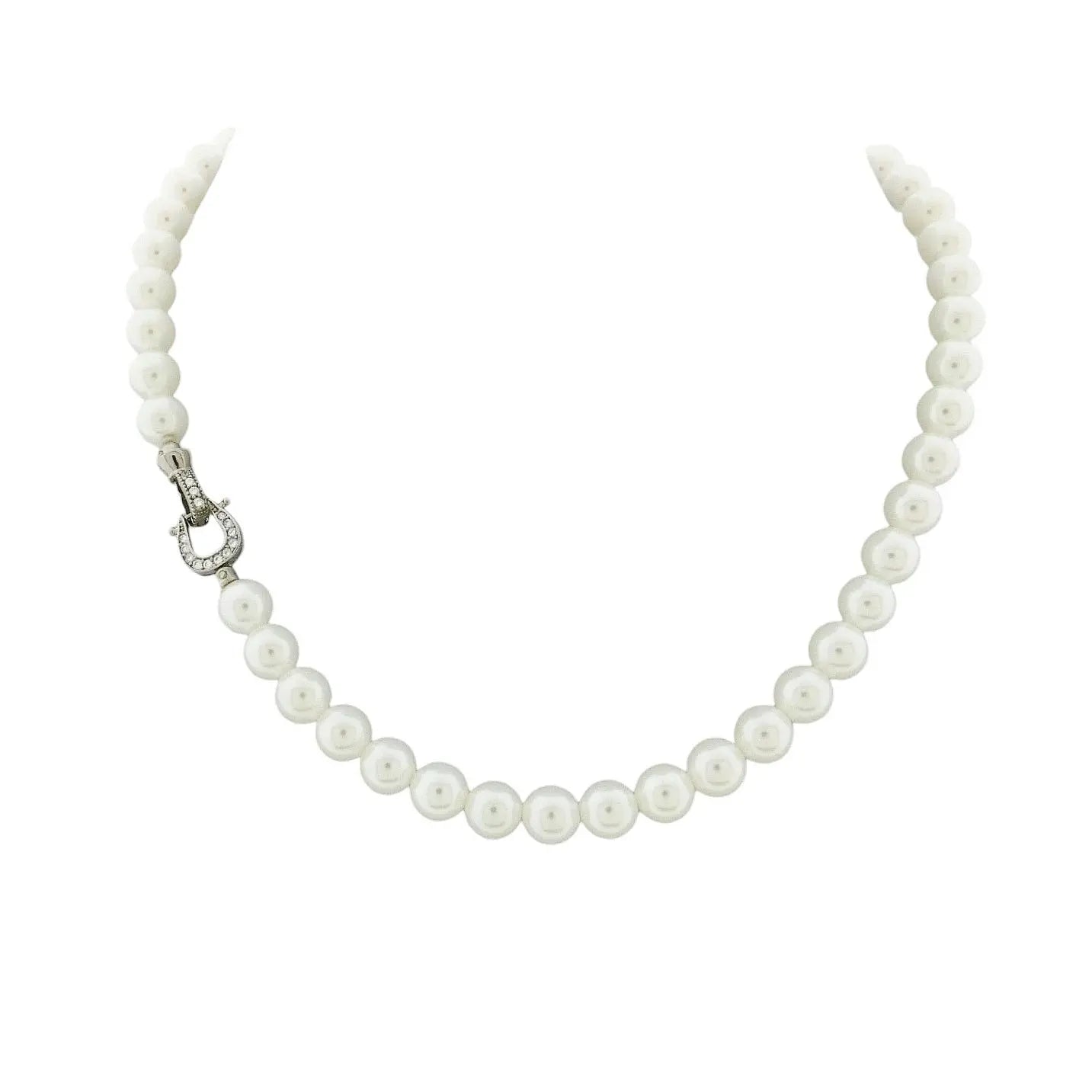 Alexandra parelcollier met een zilverkleurig slot met zirkonia stenen