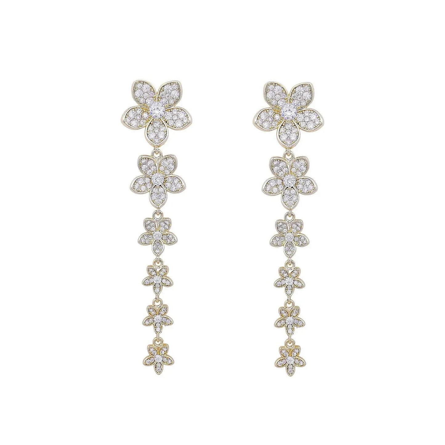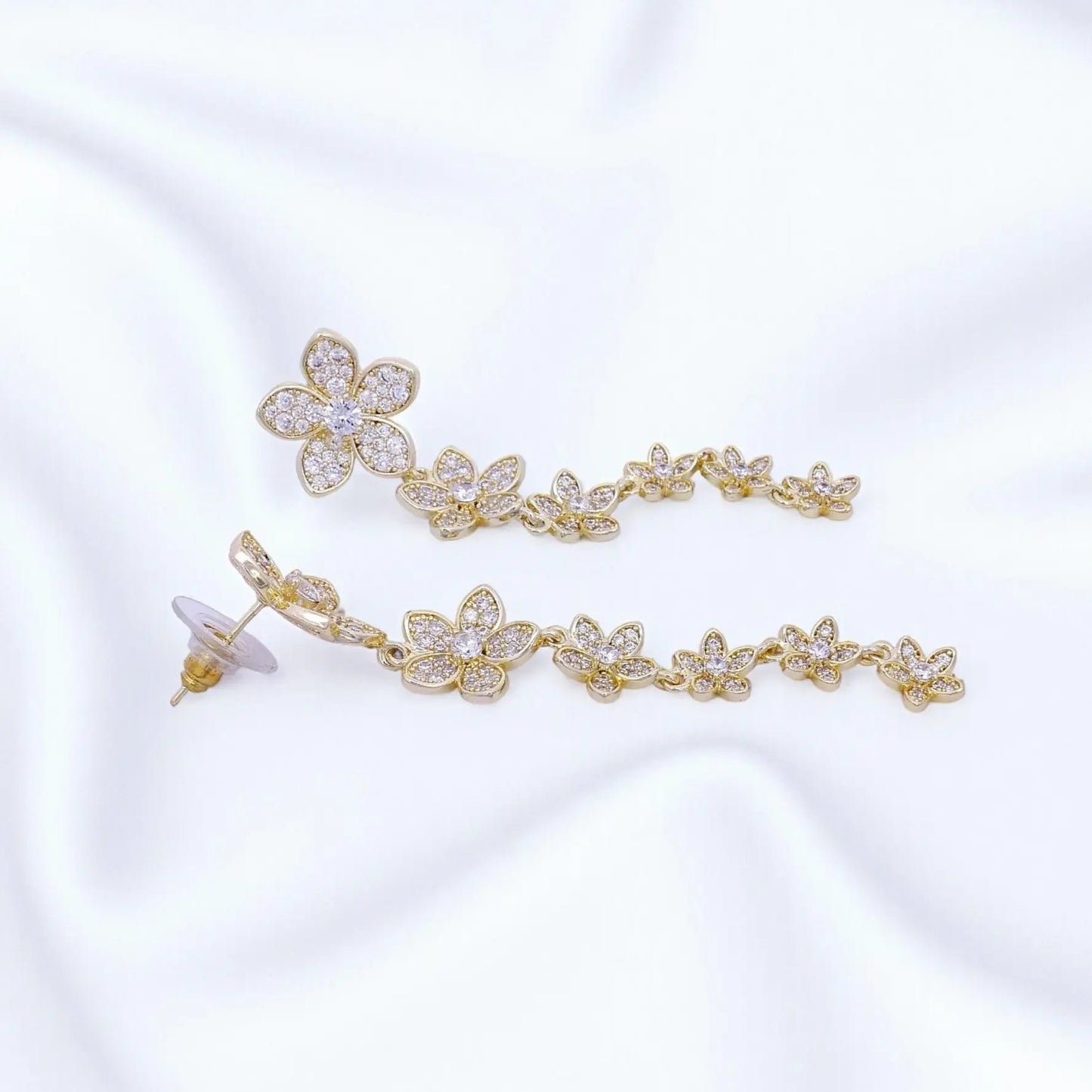 Goudkleurige bloemenwaterval oorbellen met zirkonia stenen