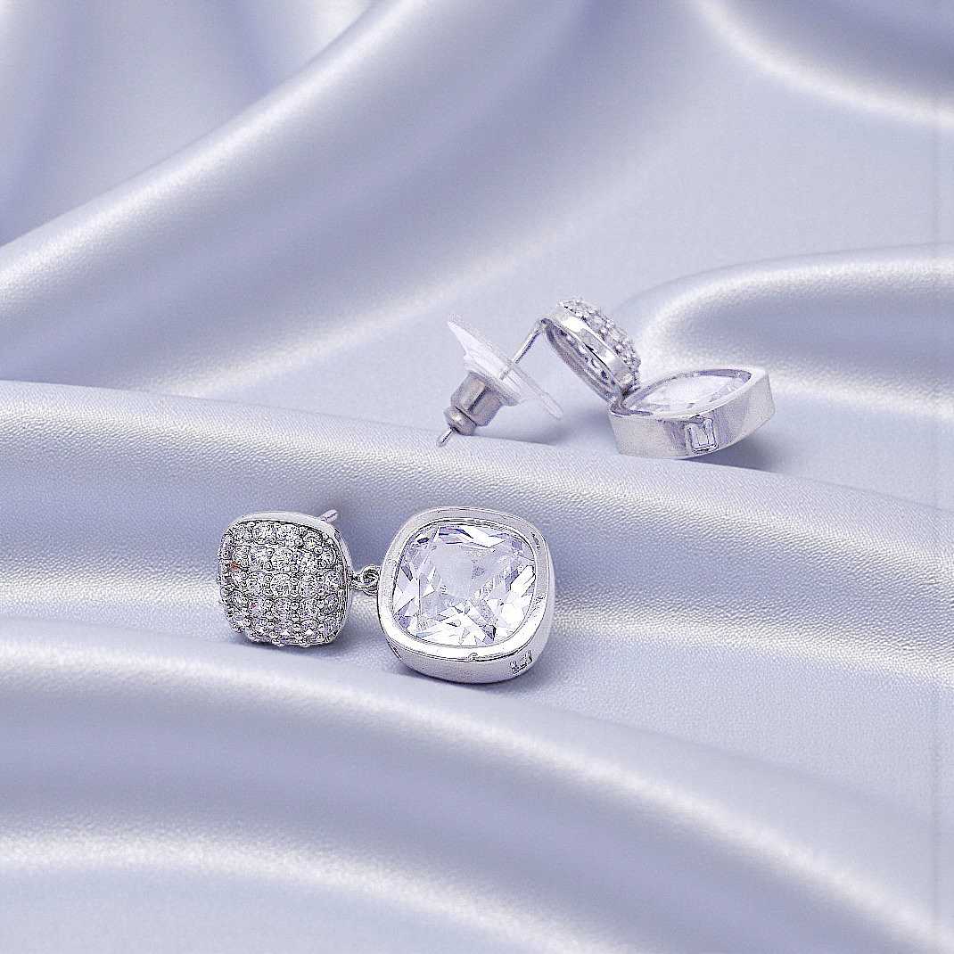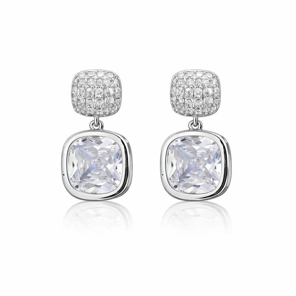 Zilverkleurige pavé oorbellen met cushion zirkonia stenen