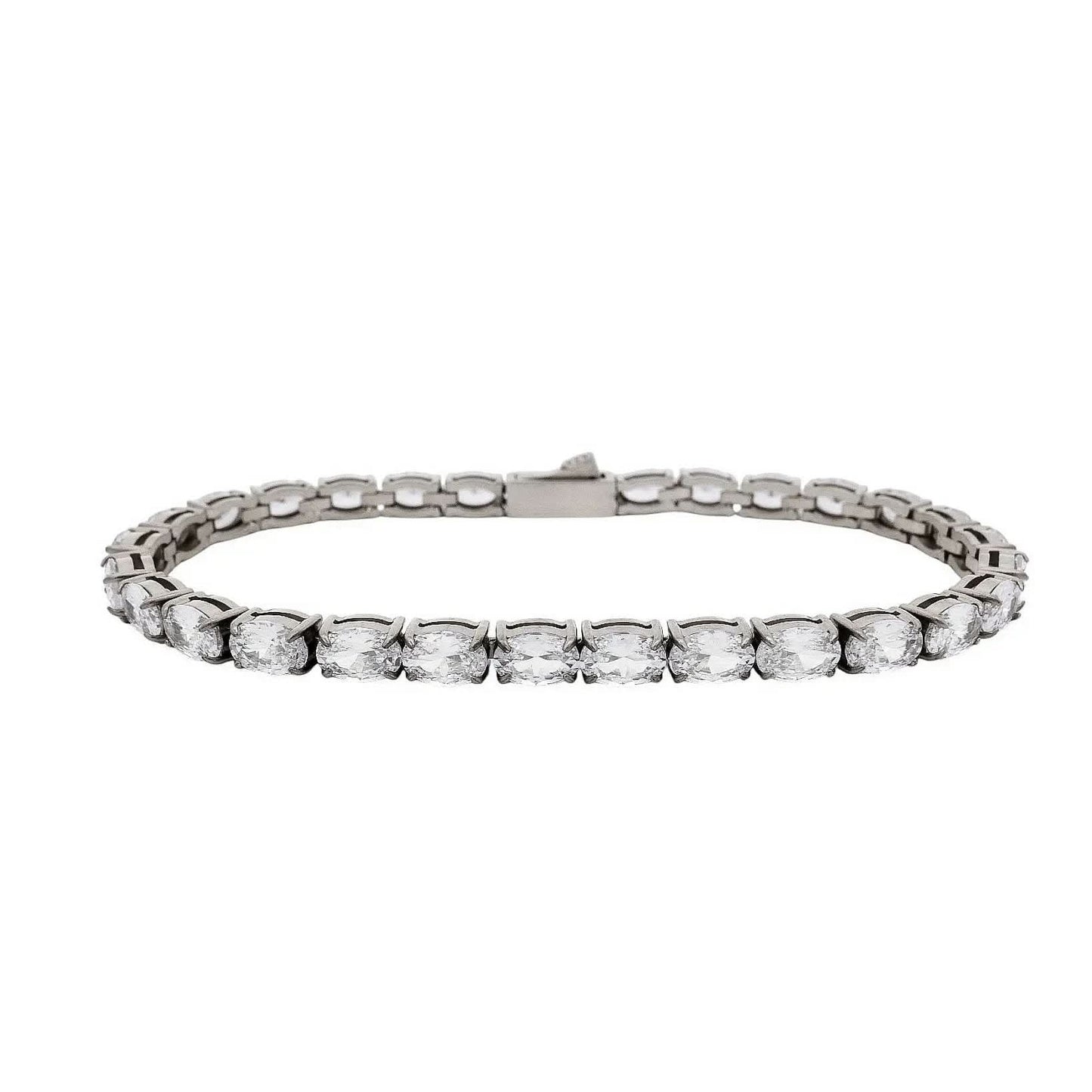 Zilverkleurige RVS tennisarmband 18,3 cm met ovale zirkonia stenen