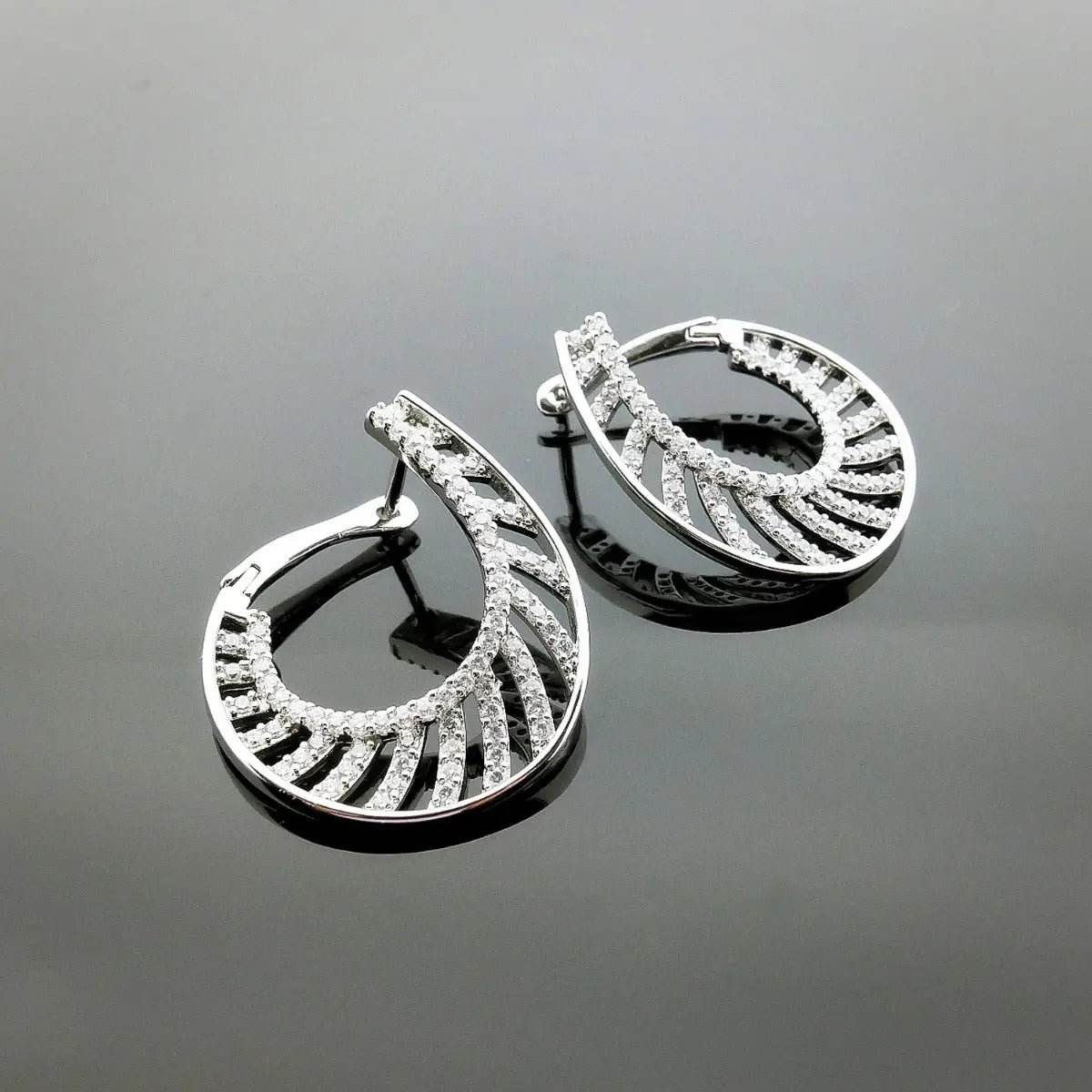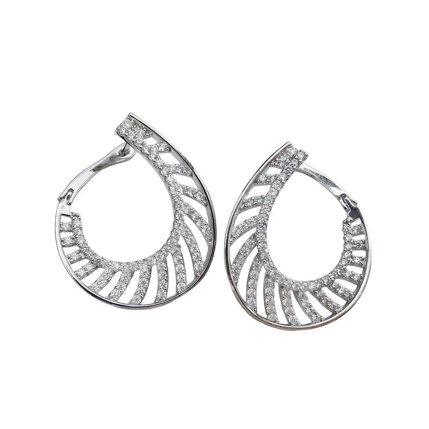Zilverkleurige druppel oorbellen met zirkonia's