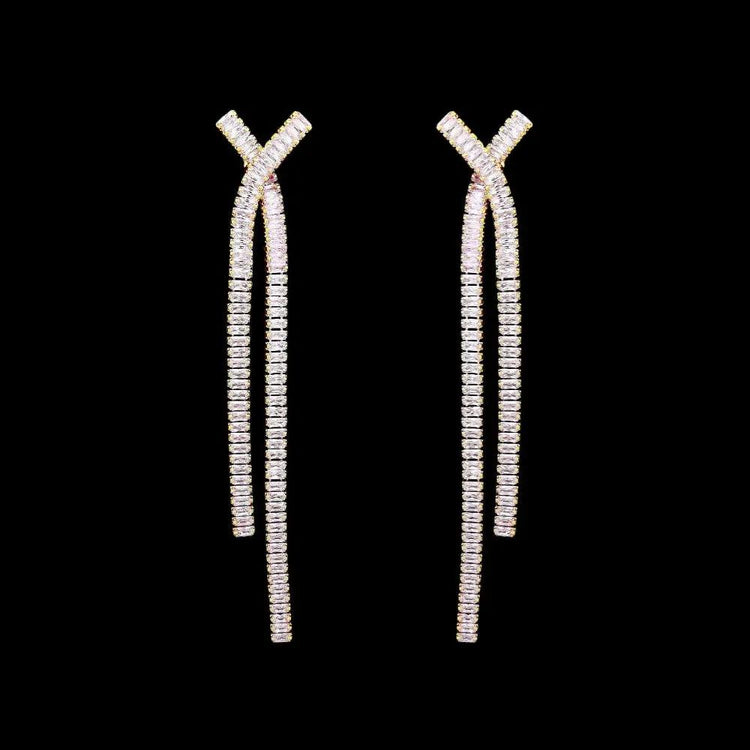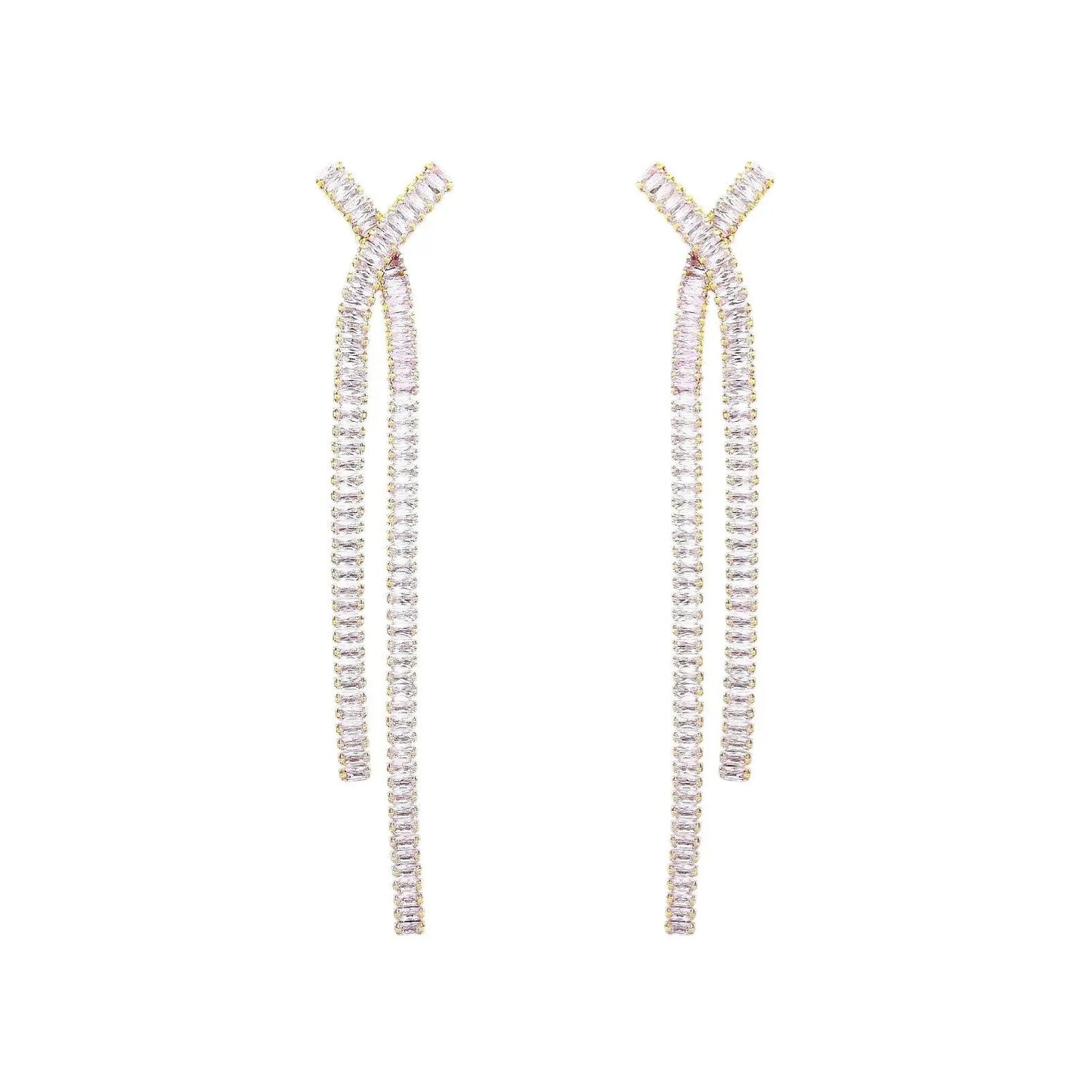 Goudkleurige Y-vorm oorbellen met zirkonia stenen