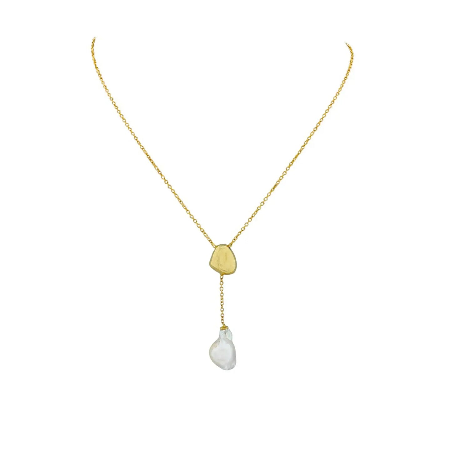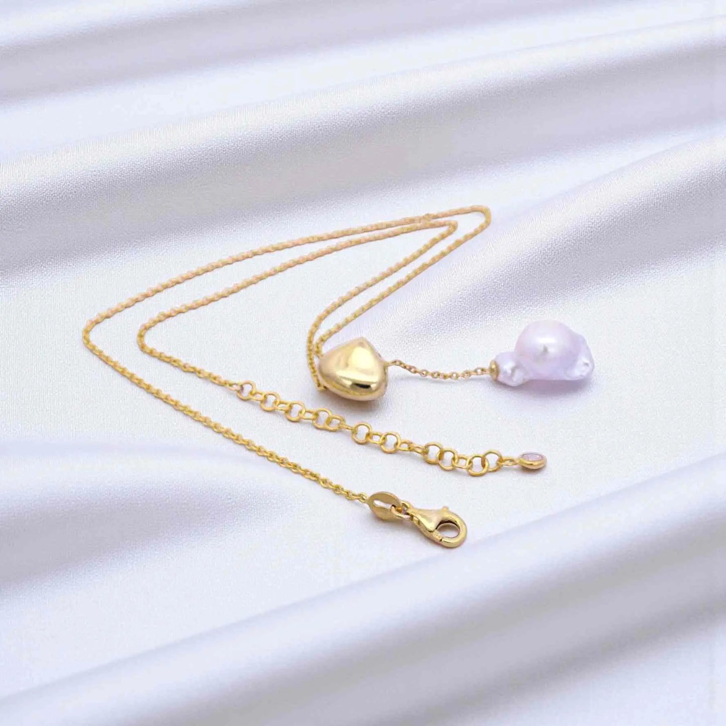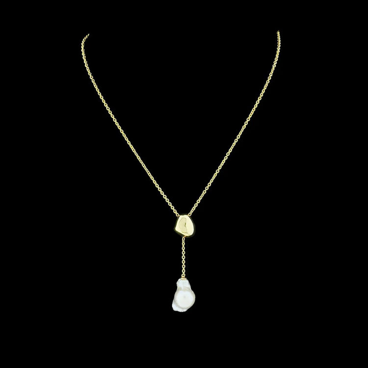 Verguld zilver Y-chain met baroque zoetwaterparel