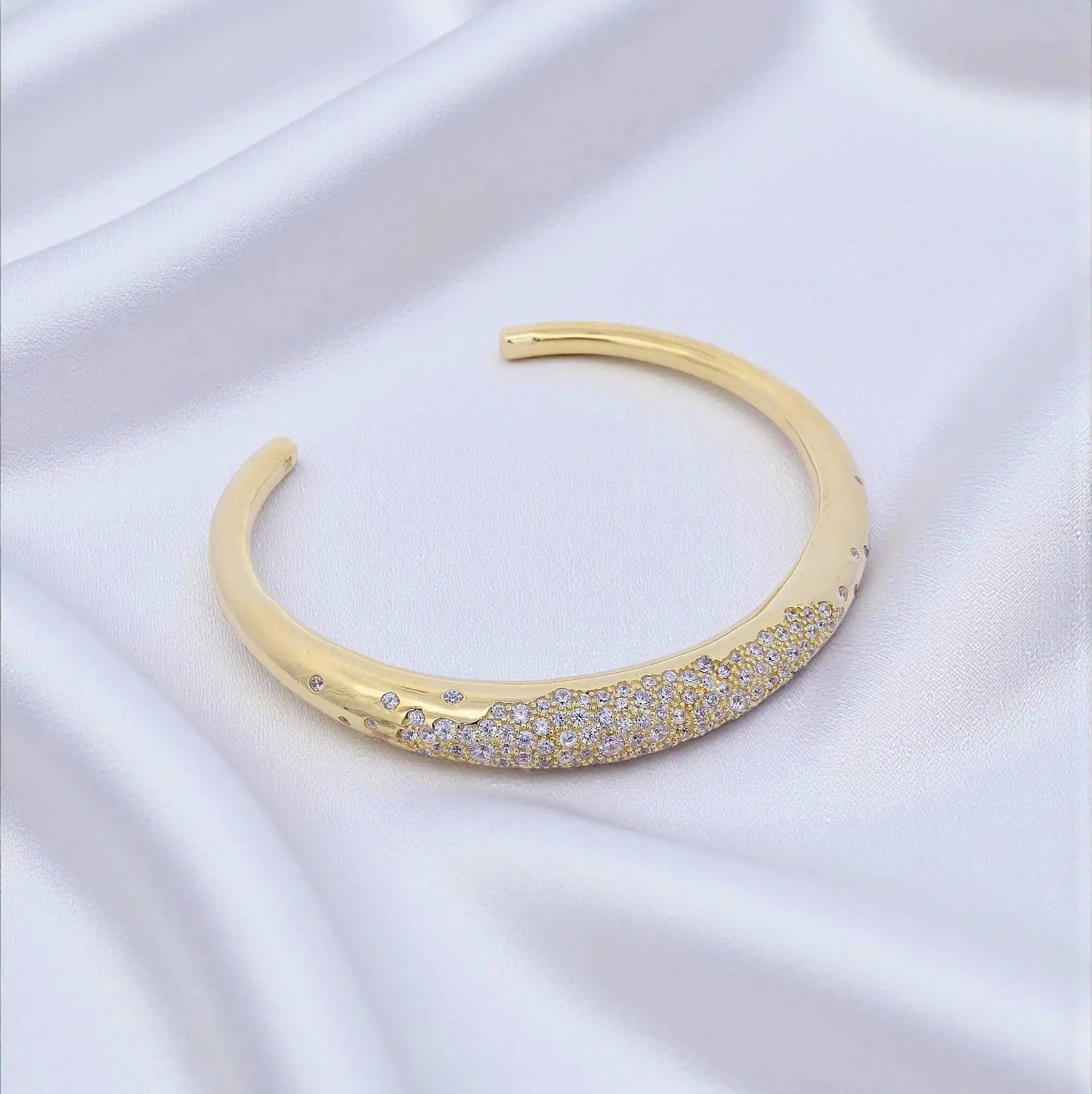 Vergulde zilveren klemarmband met pavé zirkonia stenen