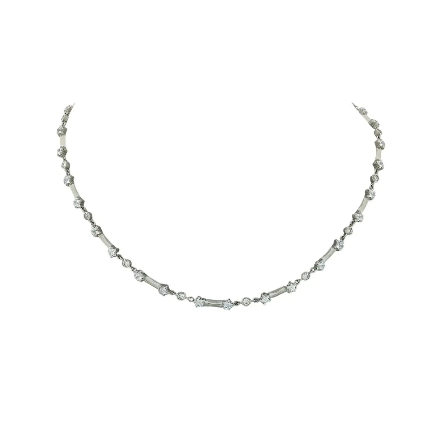Deze verfijnde Ster collier is vervaardigd uit hoogwaardig 925 sterling zilver en schitterend bezet met stervormig geslepen en briljant geslepen zirkonia stenen. De combinatie van beide slijpvormen zorgt voor een unieke schittering die direct opvalt, terwijl het elegante ontwerp moeiteloos aansluit bij zowel dagelijkse outfits als feestelijke gelegenheden. De fijne breedte van 4,5 mm geeft het collier een stijlvolle balans tussen subtiel en opvallend, waardoor het perfect rond de hals valt.