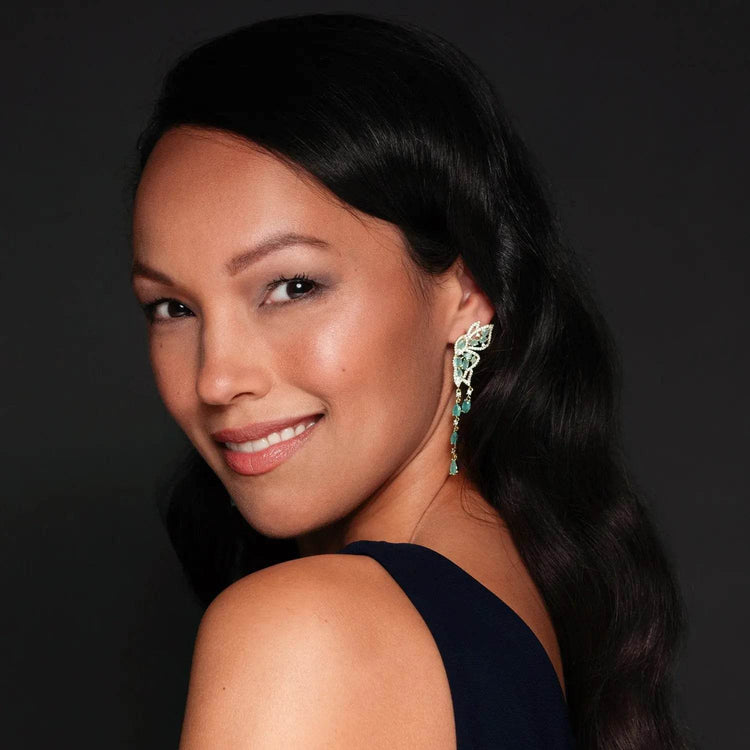 Goudkleurige vlinder statement oorbellen met groene zirkonia's