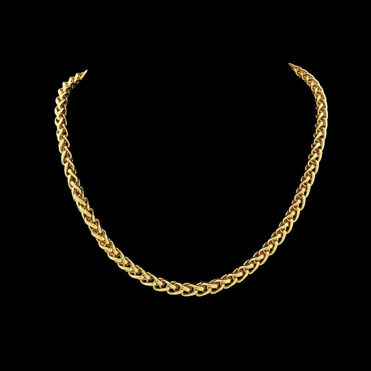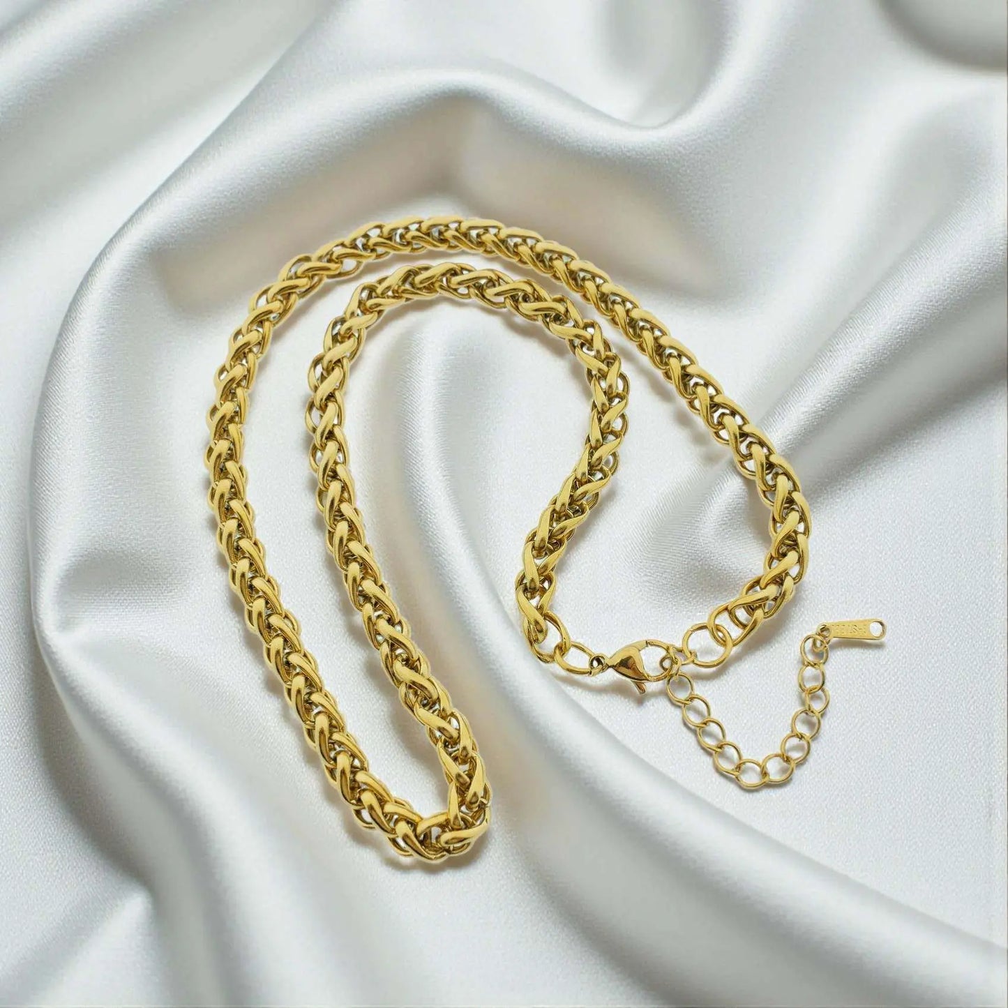 Dit verguld RVS vossenstaart collier is voorzien van een karabijnslot en een verlengstuk. Het collier heeft een breedte van 5,5 mm. De lengte van de ketting bedraagt 40 cm zonder verlengstuk en 45 cm inclusief verlengstuk. Totaal gewicht 33 gram.