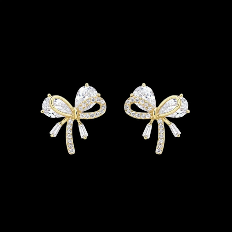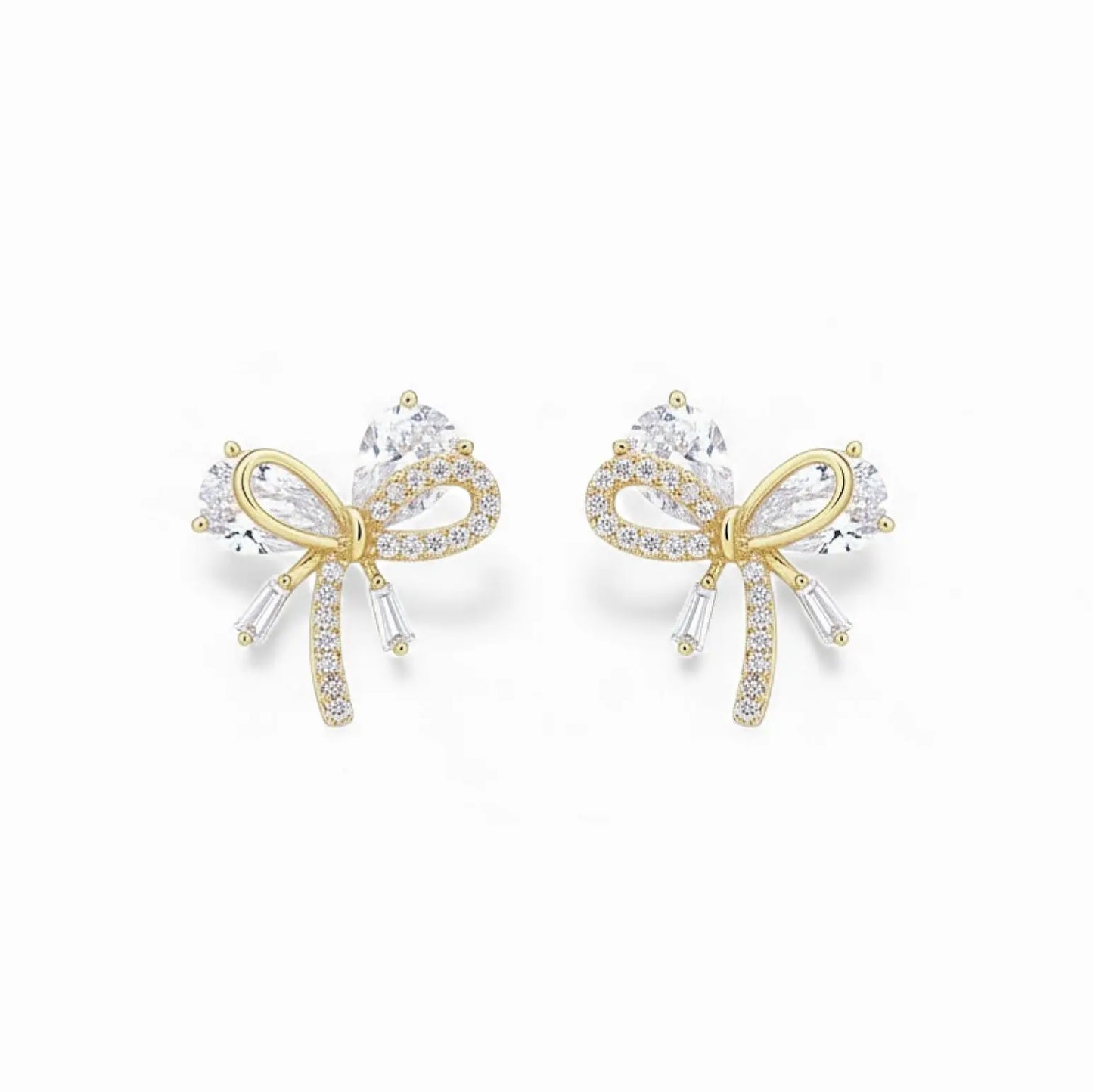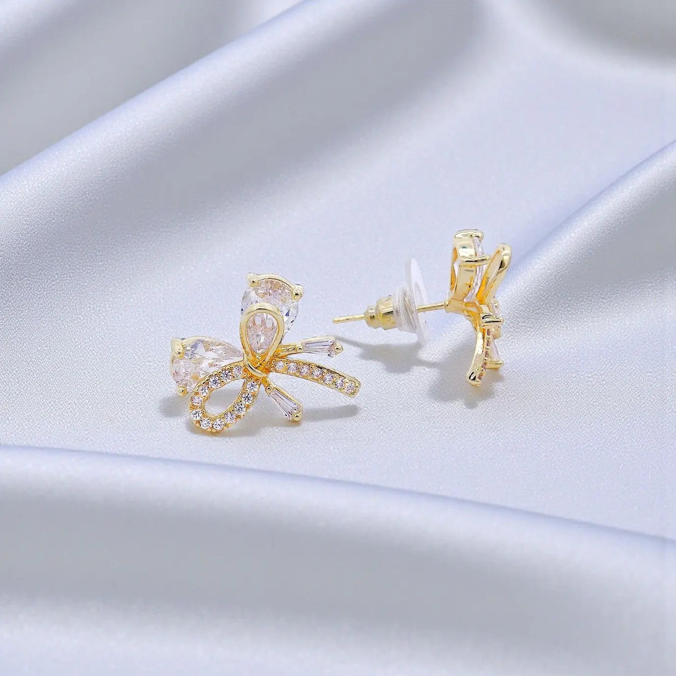 Boucles d'oreilles nœud papillon couleur or avec pierres de zircone