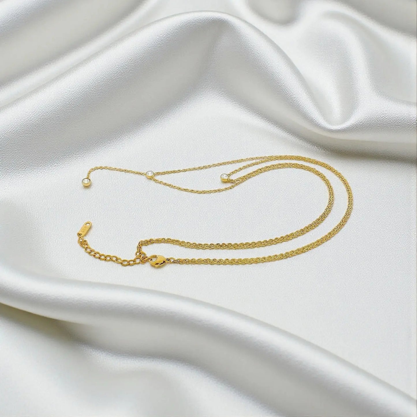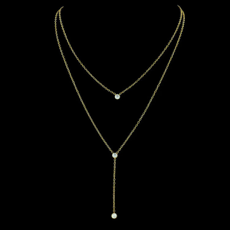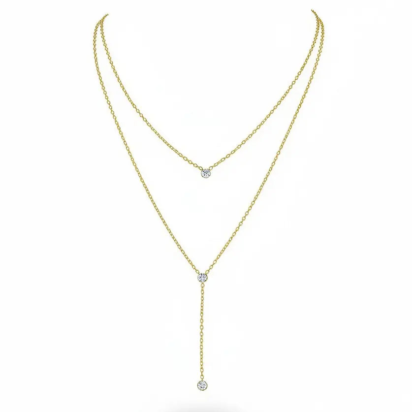 Collier Double en Acier Inoxydable Doré avec Pierres de Zirconium
