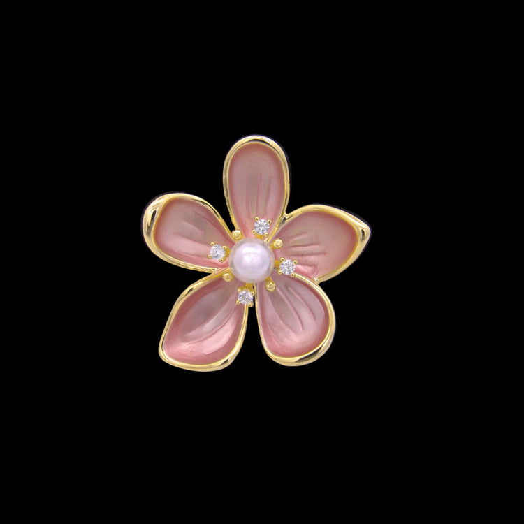 Broche Fleur de Pommier Dorée avec Perle, Pierres de Zirconium et Émail