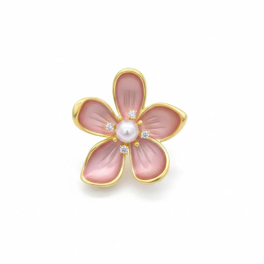 Le design de la broche fleur de pommier est délicat et raffiné, avec une douce brillance grâce au lustre satiné de l'émail. La combinaison du métal doré, des perles, des pierres de zirconium et des accents roses subtils crée un détail élégant et stylé. Ce bijou ajoute une touche intemporelle et féminine à toute tenue.