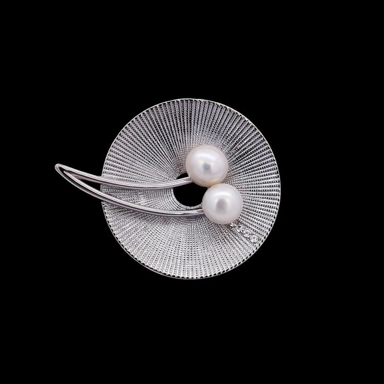 Broche Disque Argentée avec Perles d'Eau Douce et Pierres de Zirconium