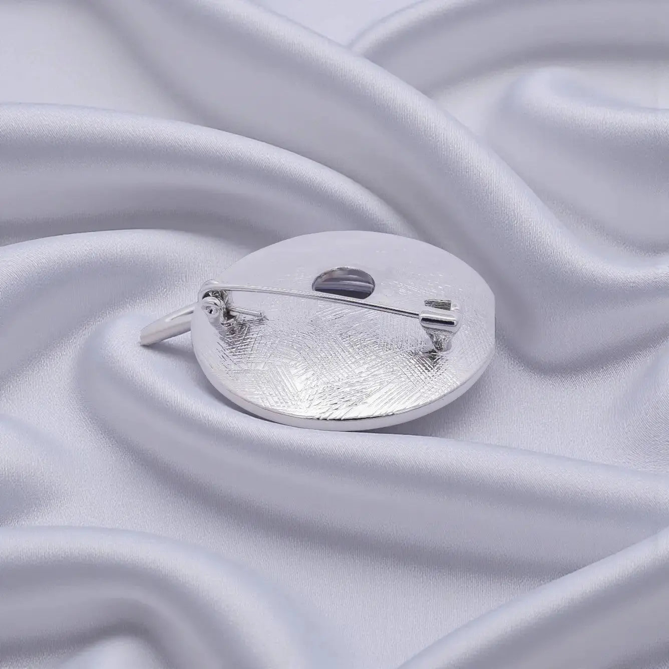 La broche présente une forme ronde élégante avec un éclat subtil. L'alliance du métal argenté, des perles et des pierres de zirconium crée un accent raffiné. Le design ajoute un détail intemporel à une tenue sans la surcharger.