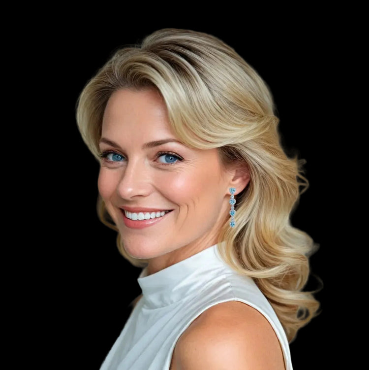 Boucles d'oreilles longues en argent avec pierres en zircone bleue