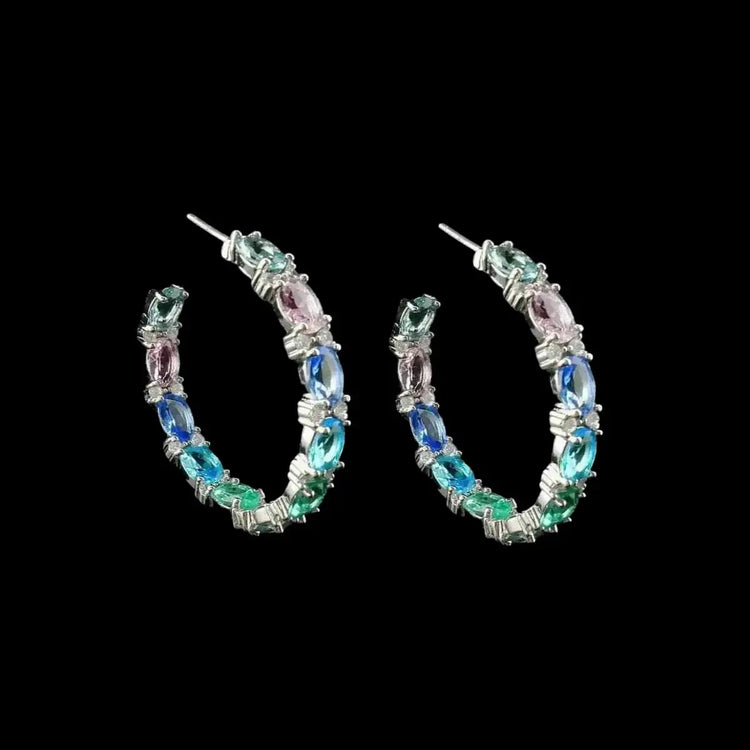 Deze zilverkleurige creolen met multicolor zirkonia’s zijn een sprankelende en speelse toevoeging aan elke sieradencollectie. De combinatie van kleurrijke zirkonia’s in een elegante zilverkleurige setting zorgt voor een levendige en veelzijdige uitstraling. Perfect voor vrouwen die hun look willen verrijken met opvallende en unieke sieraden.