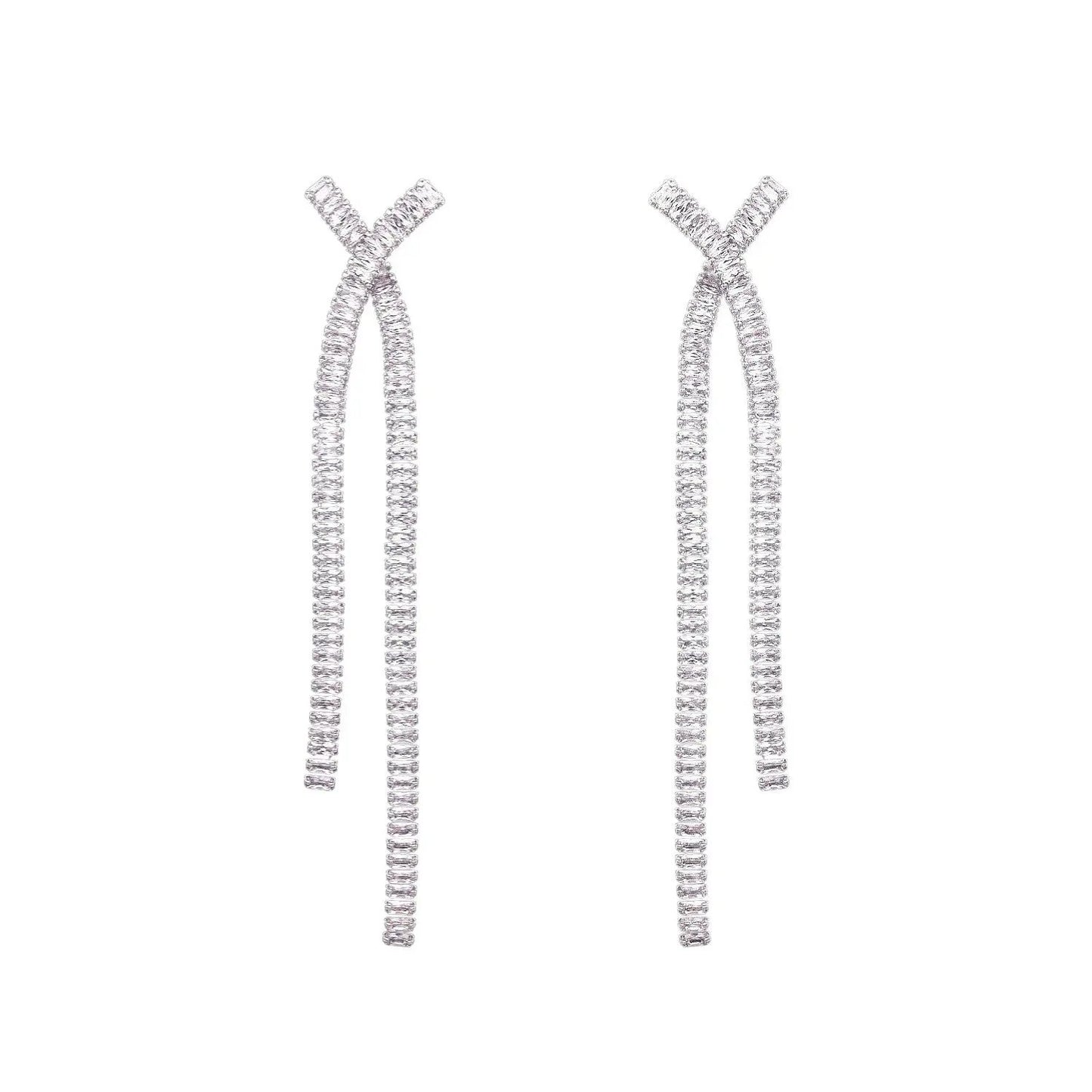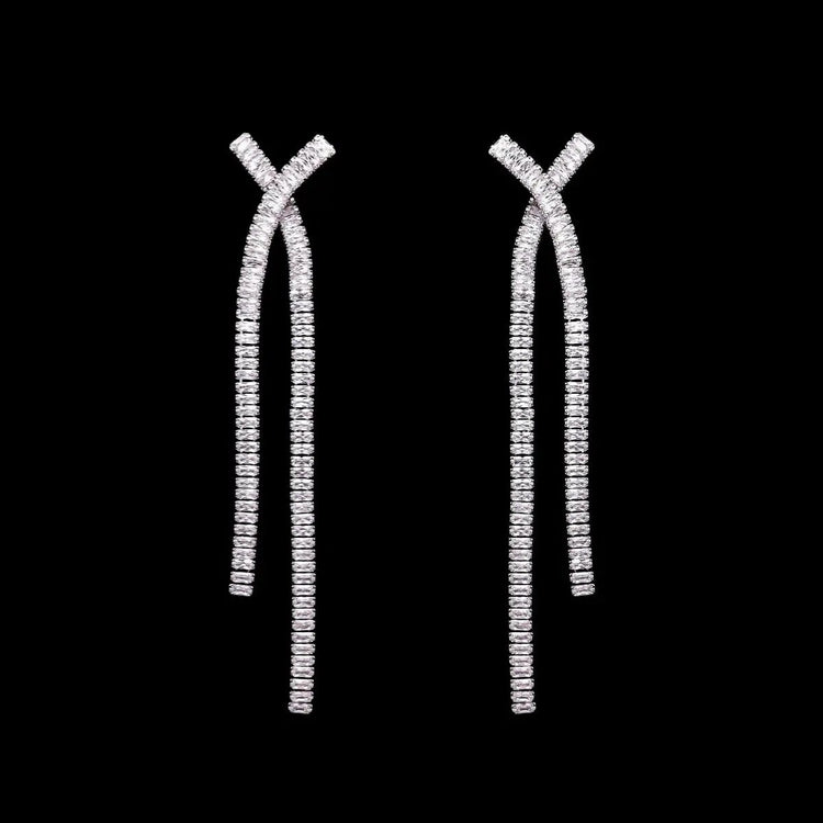 Zilverkleurige Y-vorm oorbellen met zirkonia stenen